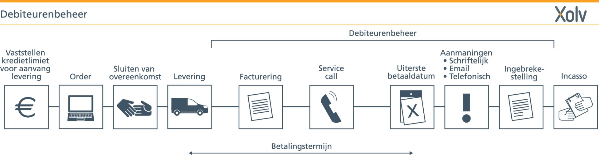 Het debiteurenbeheer is te vangen in de volgende stappen: